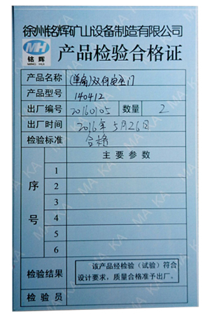 本手動(dòng)礦用無(wú)壓風(fēng)門(mén)是我廠自主開(kāi)發(fā),產(chǎn)品質(zhì)量標(biāo)準(zhǔn)和檢測(cè)標(biāo)準(zhǔn)嚴(yán)格執(zhí)行Q/WMS-3017-2006《風(fēng)門(mén)》。